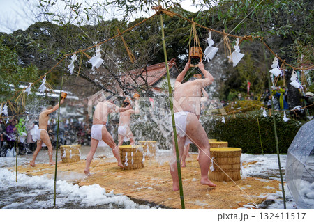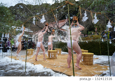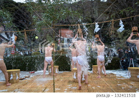〈島根県〉水行式 桶に汲んだ冷水を頭からかぶる僧侶