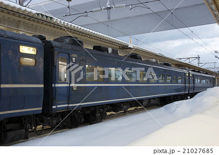 冬の青森駅に停車する寝台急行はまなす号(14系客車)