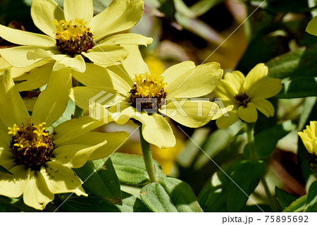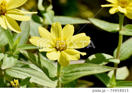 三鷹中原に咲く黄色いヒャクニチソウ(ジニア)の花