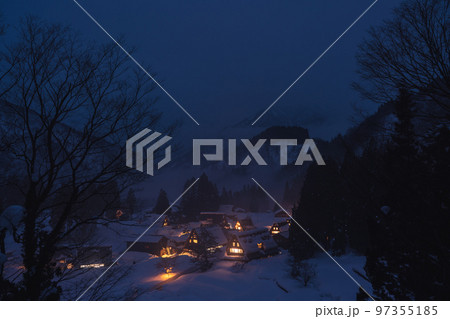 冬の白川郷 五箇山の夕景