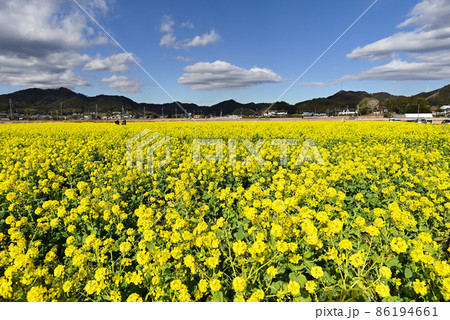 早春の南房総 鴨川の菜な畑ロード 青空のもと満開の菜の花が輝く