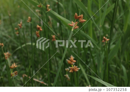自然 植物 サンカクイ、水辺の植物。稈(茎)の横から直接または短い柄を介して数個の小穂