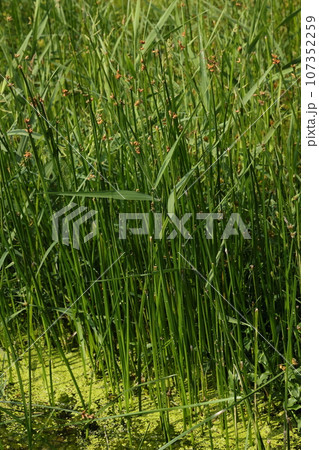 自然 植物 サンカクイ、水辺の植物。稈(茎)の断面が三角形、泥の中の匍匐茎で広がり水辺に群生します
