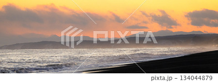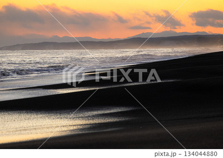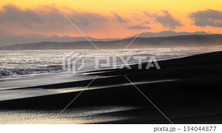 北海道道東地方にある太平洋に面した海岸の夕暮れの風景