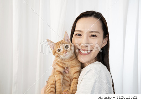 猫を抱いた女性