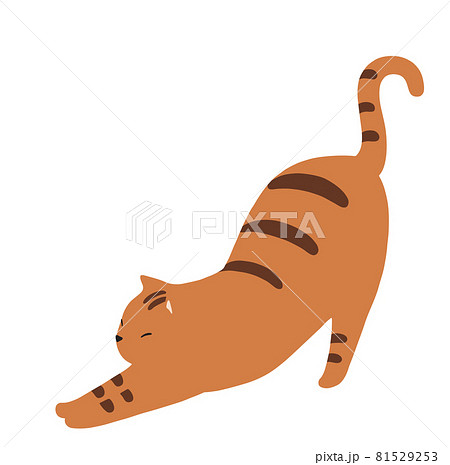 伸びをする猫のイラスト-トラ猫