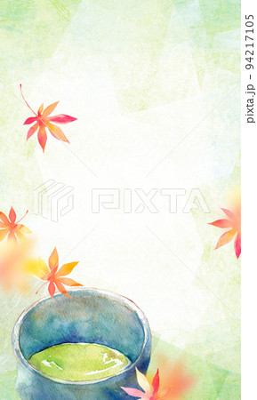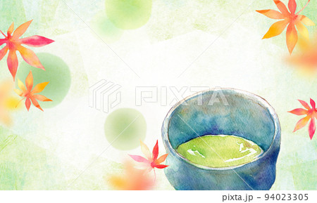 紅葉と抹茶 背景素材 水彩