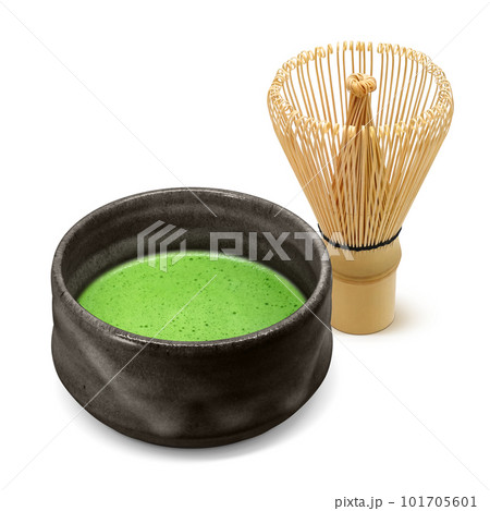 抹茶茶碗と茶筅のセット - フラットイラスト