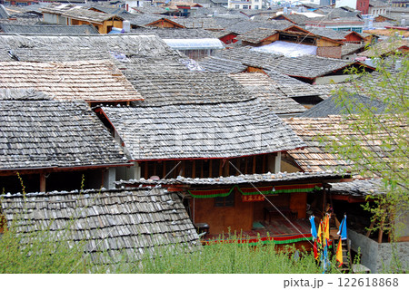 中国 雲南省 シャングリラ旧市街 トラディタル寺院屋根