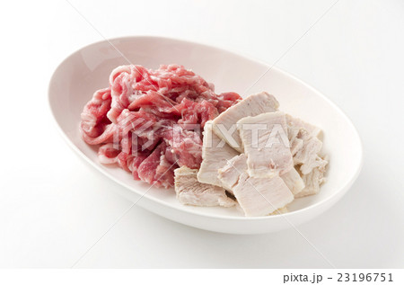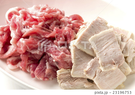豚肩ロース細切れ肉と茹でた三枚肉