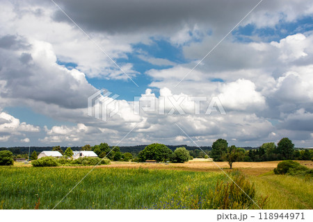 Countryside landscape with sky and fields, real life photo