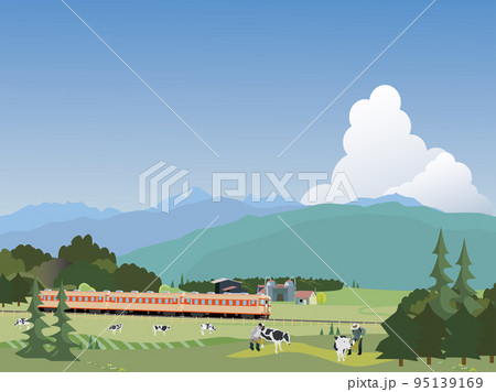 北海道の牧場を走る列車