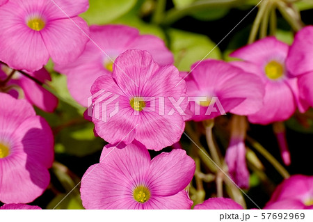 三鷹中原に咲くピンクのオキザリス(ハナカタバミ)の花