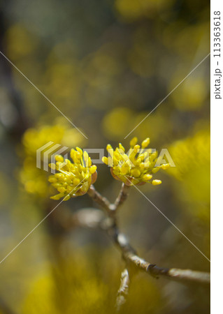 「気丈な愛」の花言葉のように、冬の寒さの中から目覚め開花した、春の黄金花、縁起の良い花
