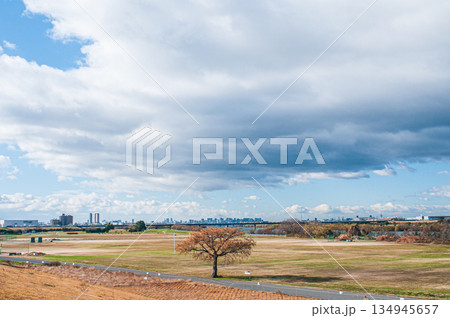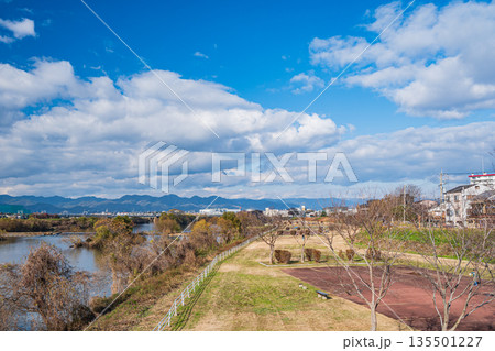 冬の淀川河川敷グラウンド 大阪府寝屋川市