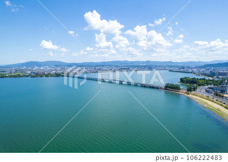 滋賀県大津市の近江大橋付近 ドローンにて撮影 2022年5月撮影