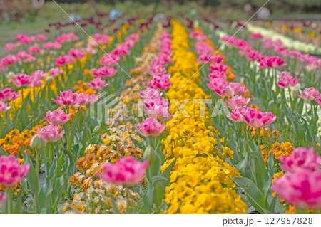 家の周りの草花 四季の色々 農業公園の花畑に美しい色とりどりのチュリップの花が咲きました
