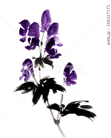 水墨画技法で描いたトリカブト