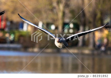 The flying greylag goose, Anser anser is a species of large goose