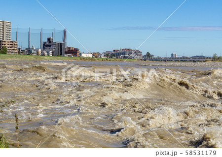 荒ぶる多摩川 多摩川増水 台風19号 2019年