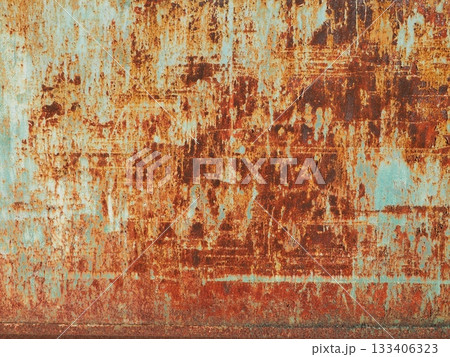 塗装が剥がれ傷つき錆びた鉄製の扉