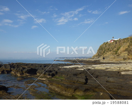 三浦市 荒井浜海岸 岩礁のみちと諸磯崎灯台