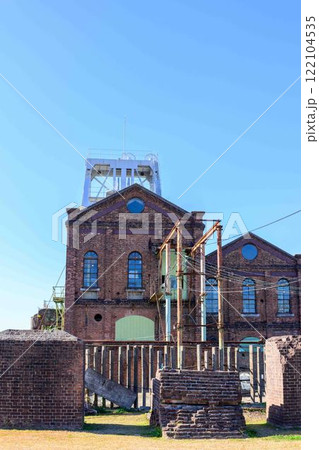 青空を背景に炭鉱跡風景(万田坑ステーション)荒尾市