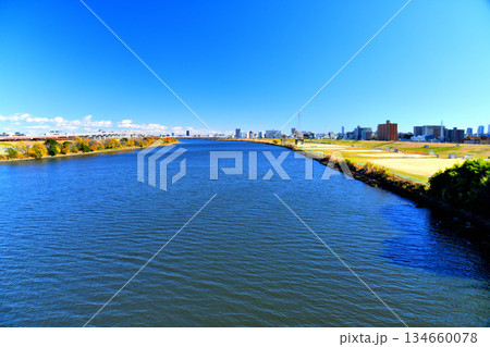 「東京都」荒川河川敷から眺める東京スカイツリー