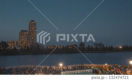 赤羽 荒川沿い 北区花火大会 開始直前 ピクニックエリアの会場風景