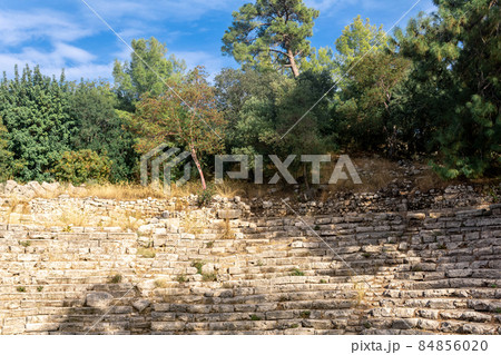 ruins of antique theater among the forest in the ancient city of Phaselis, Turkey