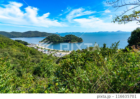 初秋の坂越 妙見寺と生島の風景 兵庫県赤穂市