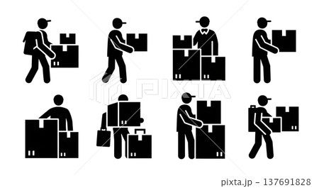 Black Solid Carrying Boxes Silhouettes Set of Six on White Background
