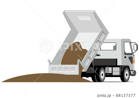 ダンプカー、サイドアングル、荷下ろし、イラスト