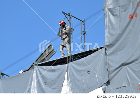 建築現場 鉄骨搬入 揚重 荷上げ 玉掛け