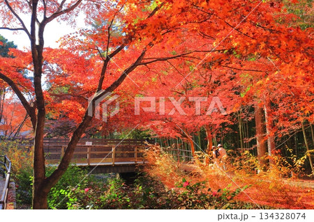 【京都府】北野天満宮の鶯橋の紅葉(もみじ苑)