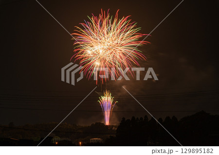 夏の夜空に映える美しい彩りの打ち上げ花火風景 (コピースペース素材) (熊本県菊池郡大津町)