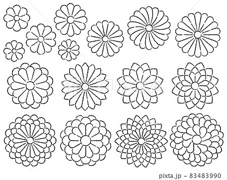 和風の菊の手描き風線画イラストセット