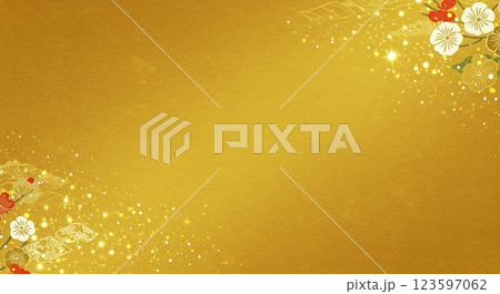 鮮やかな菊と金箔のイラスト背景