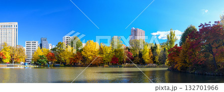 秋晴れの札幌市中島公園 紅葉風景
