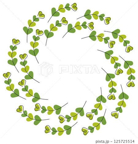 One line Hearts shaped leaves Monochrome green Branches Circle Frame border Copy space Template idea