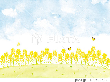 菜の花畑 水彩イラスト
