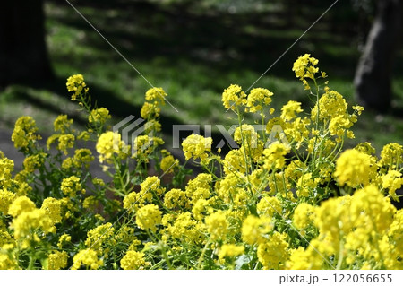 三鷹市仙川河岸草地に咲くアブラナ(ナノハナ)