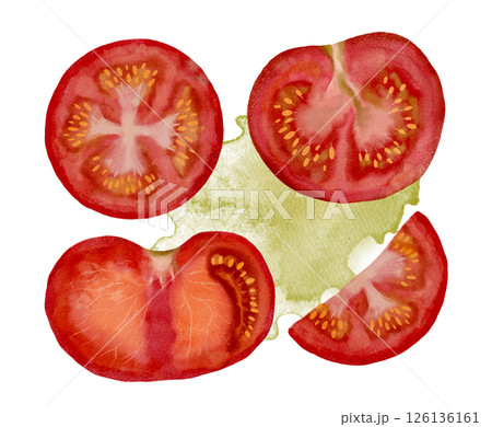 Watercolor artwork of fresh tomato slices beautifully captured against a white background