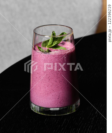 Enjoy a Delicious Purple Smoothie topped with a Fresh Mint Garnish for a refreshing sip