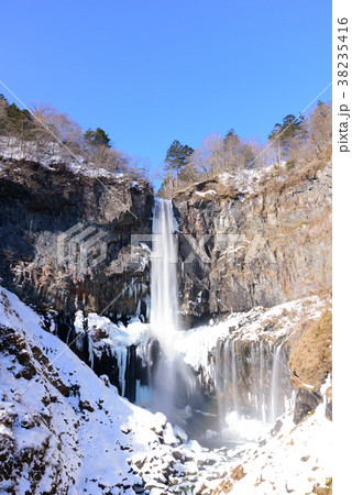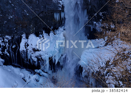日光華厳の滝の冬 d-2 断崖と氷瀑 クローズアップ