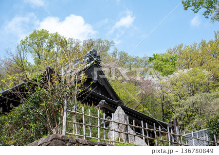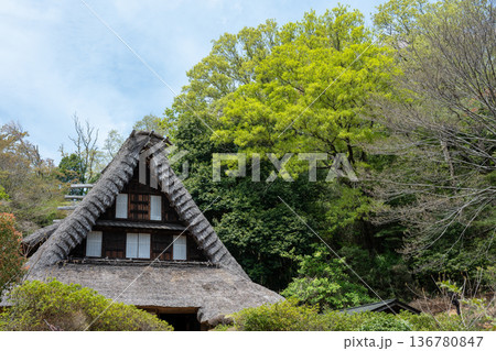 木々が萌えるのどかな春の里山の風景 e-1