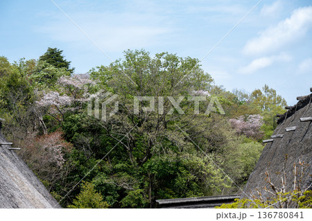 山の木々が萌えるのどかな春の里山 ソフトカラー