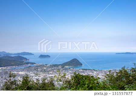 田床山展望台から望む萩市街地と日本海