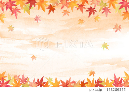 板(ウッドデッキ)の上の木の葉の背景イラスト、季節のイメージ
