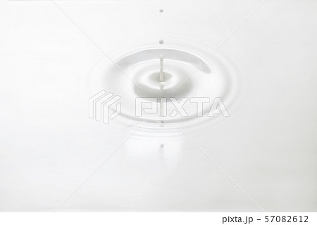 透明感のある水面に一滴の水、モノの着水、水が注がれた時の水柱としぶきと気泡 真横1